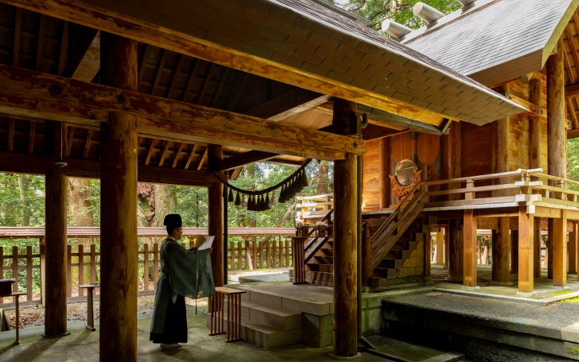 古事記・日本書紀に記される神話の舞台。天照大御神が住まわれたとされる「天岩戸神社 東本宮」での正式参拝へご案内します。「天岩戸神社 西本宮」では、天照大御神がお隠れになった天岩戸が御神体として祀られており、拝観時は神職との交流も交えながら日本神話の世界に触れていただけます。