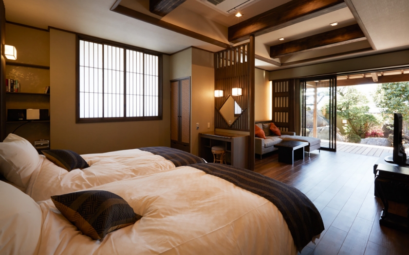 高千穂の自然と文化が深く調和した旅館です。敷地内には四季折々の風情を楽しめる美しい日本庭園があり、訪れる人々を穏やかで優雅な雰囲気で包み込んでくれます。全ての客室に内湯もしくは露天風呂があり、また地元の食材をふんだんに使った懐石料理をお楽しみいただけます。神話と伝統が息づく高千穂の地で、日常の喧騒を忘れ、心がほどけるようなゆっくりとした時間をお楽しみください。