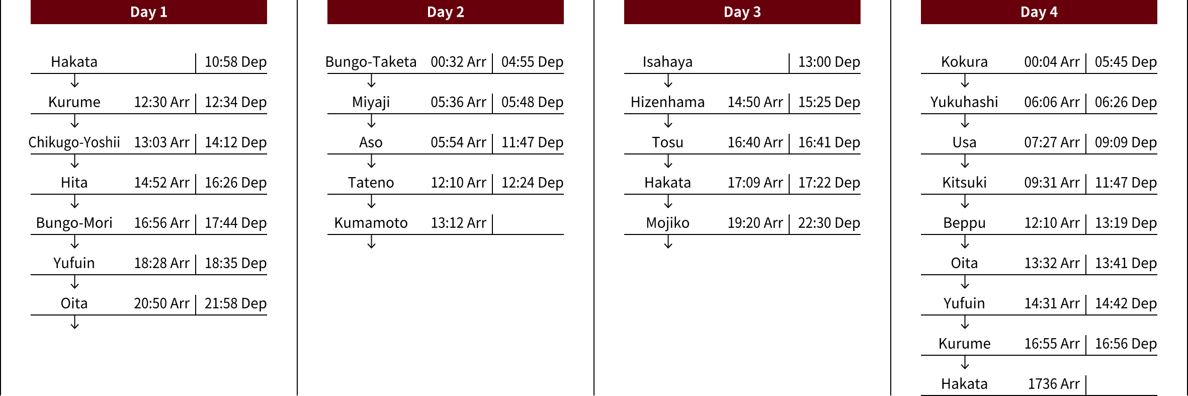 Onboard, you are invited to indulge in a culinary experience found nowhere else: a refined expression of Kyushu’s essence, crafted exclusively for the train. Each dish is a celebration of the land, the people, and the spirit of hospitality that defines this extraordinary journey. (Lunch)